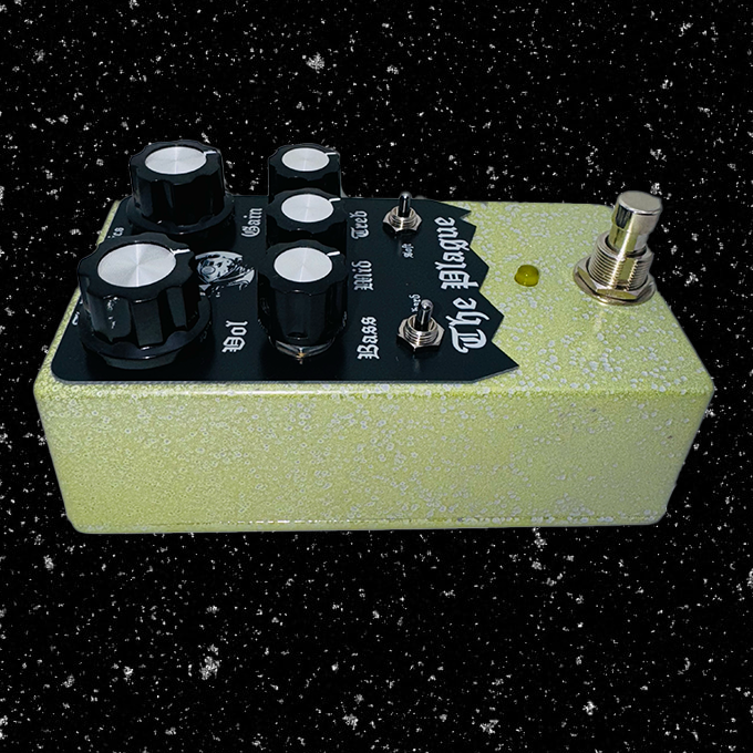 This isn’t just distortion—it’s a weapon, a way to spit back against the plague of human excess. It’s built to be ugly, raw, and furious. The high-gain, crust-snarling voice of this pedal is the result of endless experimentation to summon the perfect tone of collapse. Filthy, unforgiving, and vicious, it cuts through the mud of downtuned guitars, tightens the low end into razor-sharp decay, and leaves nothing but bone-dry clarity.